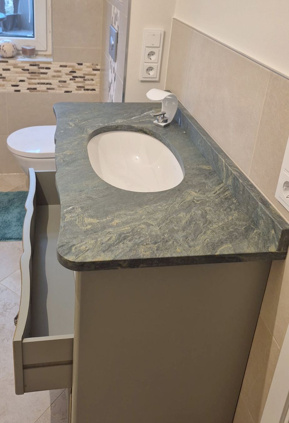 Alle Natursteinarbeiten werden von uns individuell mit Aufmaß und Schablone in hoher handwerklicher Qualität produziert und verbaut.