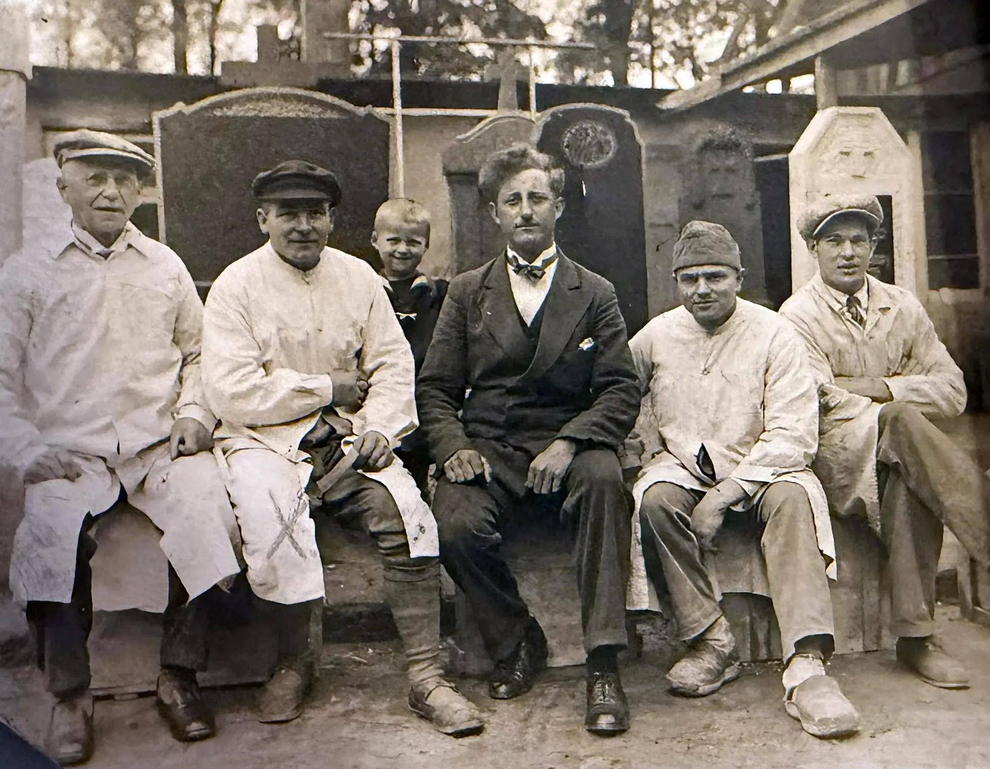 Grabmale, Bildhauerei, Terrazzofußböden in den Kellerräumen, massive Trittstufen aus Terrazzo, Pfeilerabdeckungen, Zaunabdeckungen sowie filigrane Arbeiten in Marmor, gehören zum Hauptgeschäft von Otto Grobe.