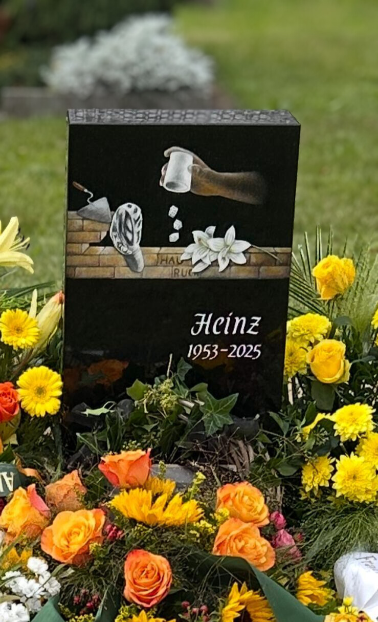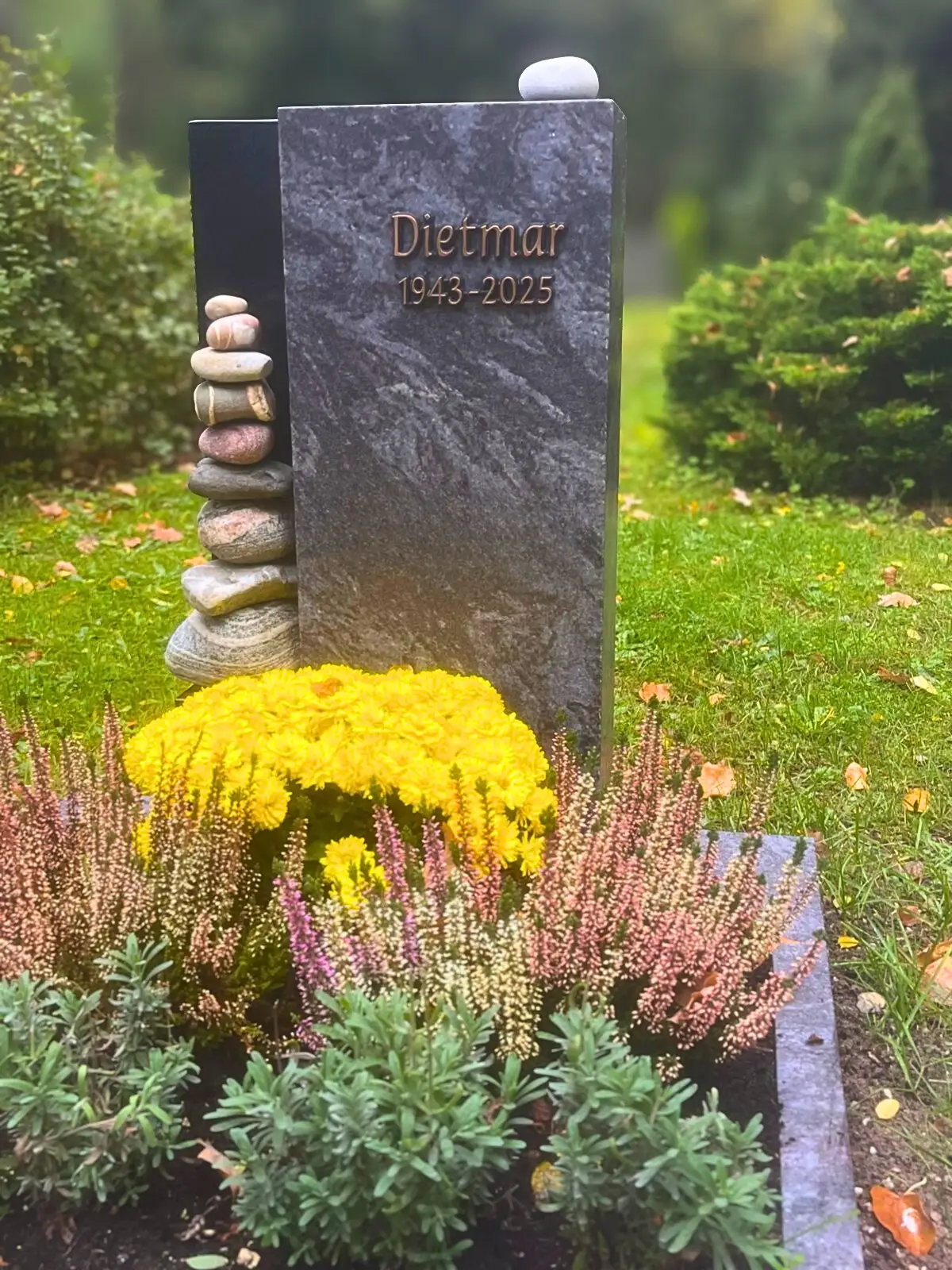 - Aufstellung des Grabsteins: Unser Team sorgt für das fachmännische und standsichere Versetzen des Grabsteins und der Einfassung.